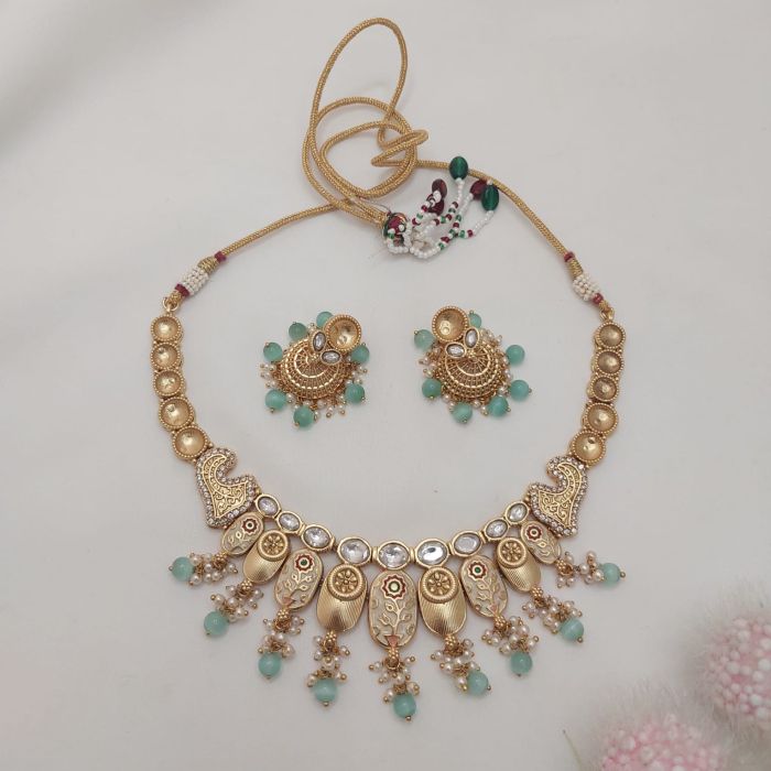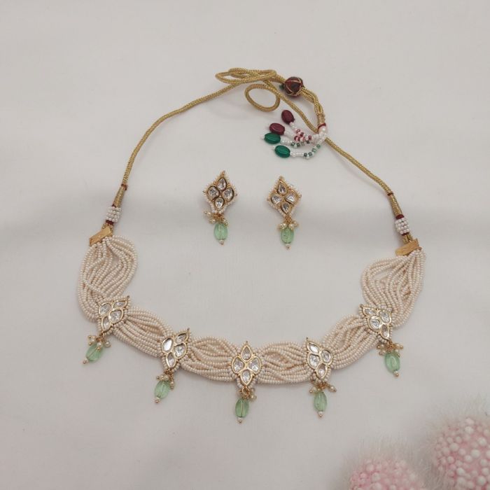 - Mint Kundan Pearl Choker Setwas ₹4,125.00 Special Price ₹3,300.00