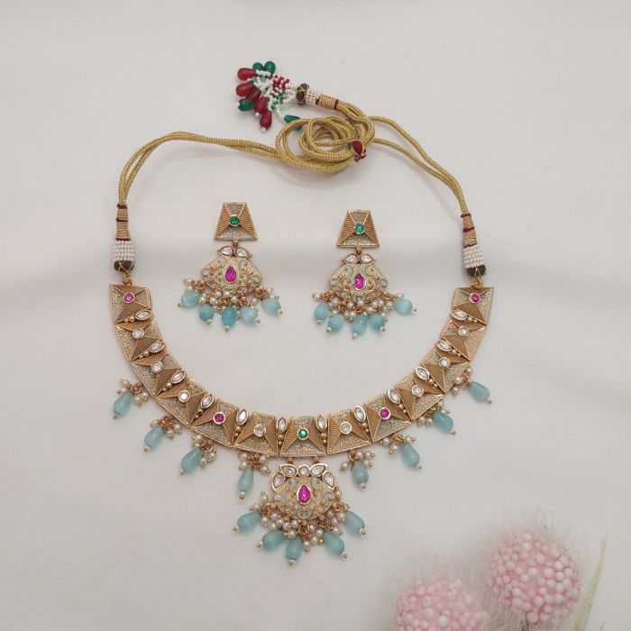 - Rajkumari Aqua Kundan Necklace Setwas ₹0.00 Special Price ₹0.00